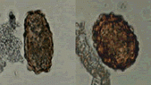 Unfertilized (left) and fertilized (right) Ascaris ova.