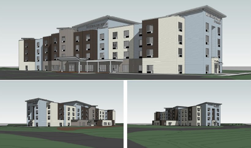 The developer purchased the site and demolished the dilapidated building, completing the site cleanup at the same time. The property was subdivided into two parcels. On one parcel, a residential housing builder plans to construct 32 residential units of senior housing and twelve single‐family homes. The second parcel has been sold for construction of a 112 room TownPlace Suites Marriott hotel. The development also includes a large outdoor recreation area and walking trail and protects a pond and nearby wetlands.