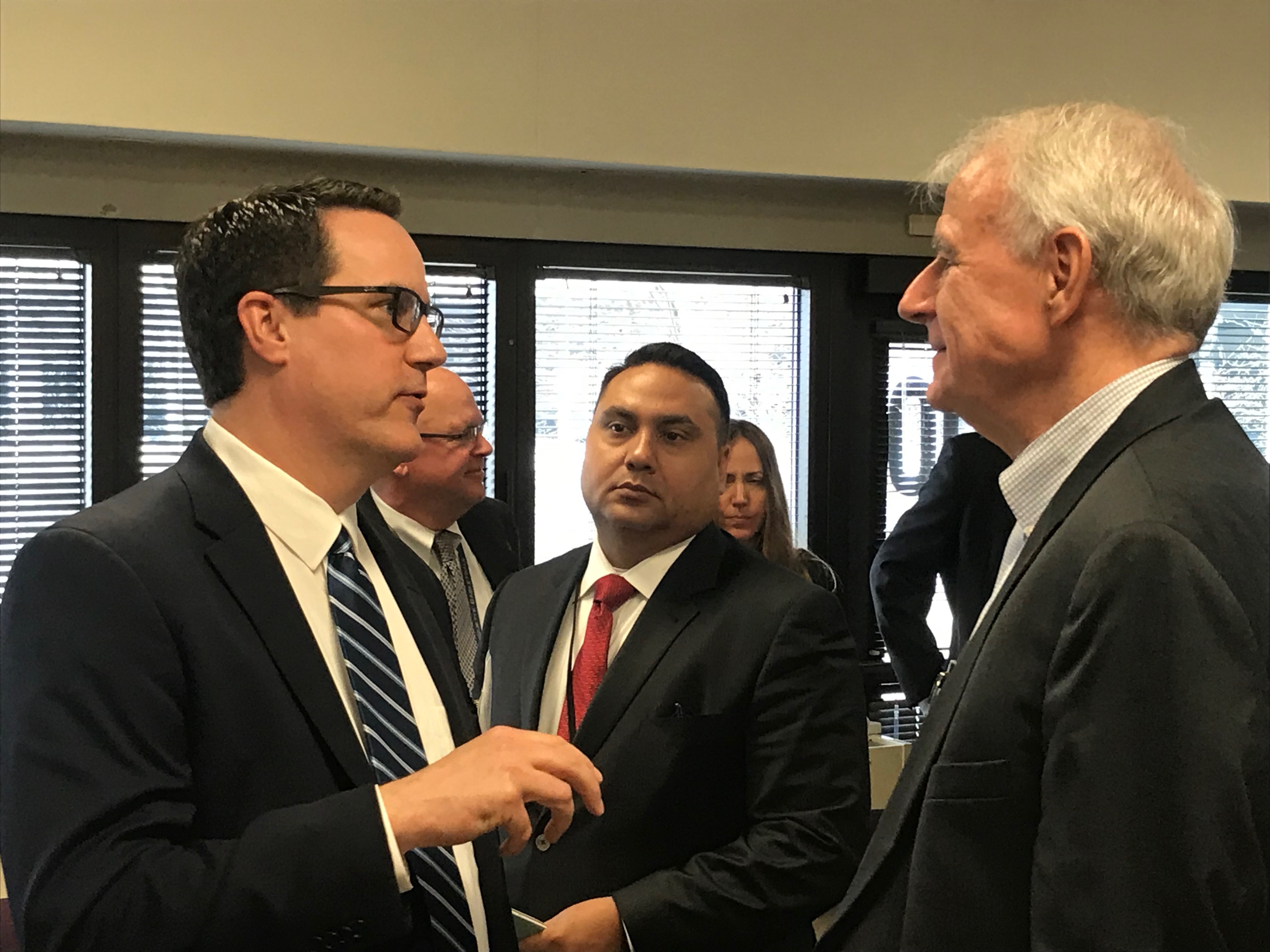 EPA Assistant Administrator David Ross speaking with Milwaukee Mayor Tom Barrett at the Milwaukee Metropolitan Sewerage District Commission Meeting on Monday, April 22, 2019.