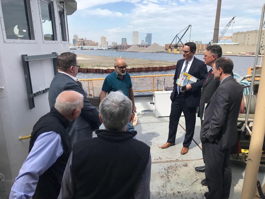 EPA Assistant Administrator David Ross with Milwaukee Metropolitan Sewerage District (MMSD) Executive Director Kevin Shafer and MMSD staff at the Jones Island Reclamation Facility on Monday, April 22, 2019.