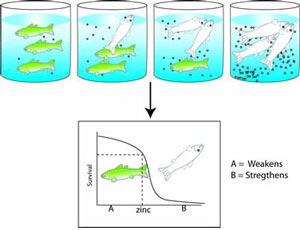 - Weakening evidence - Laboratory toxicity tests show that Daphnia have an acute LC50 of 2.3 mg/L for zinc, but zinc concentrations at the impaired site are 0.01 mg/L.
