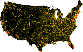 - Core areas with population density ≥ 1,000 people per square mile, plus surrounding areas with population density ≥ 500 people per square mile (U.S. Census Bureau, for 2000 Census).