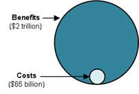 Our central benefits estimate exceeds costs by a factor of more than 30 to one, and the high benefits estimate exceeds costs by 90 times. Even the low benefits estimate exceeds costs by about three to one.