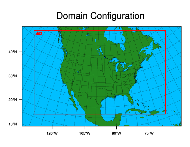 The Weather Research and Forecasting (WRF) model is used as a regional climate model to dynamically downscale each global climate model to a 36 kilometer domain over the contiguous U.S., as pictured below.