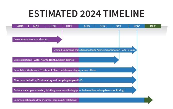 Once stream cleanup efforts are completed this summer, EPA and its Unified Command partners will re-organize into a Multi-Agency Coordination, or MAC Group. Unlike the Unified Command structure that has been in place since February 2023, the MAC Group consisting of the same local, state and federal representatives who worked together in Unified Command will coordinate with a separate standard remediation project management structure that is more suited to the final restoration phases of the project. The MAC Group will include EPA, Ohio EPA, Columbiana County Emergency Management Agency, Village of East Palestine, and Norfolk Southern. Public communications will be shared as needed instead of weekly, and we will no longer use a joint information center. There will be no change to field operations. EPA will remain on-site to oversee Norfolk Southern’s work, and the MAC Group will remain until the end of site work. This transition is typical at long-term emergency responses and signifies great progress.