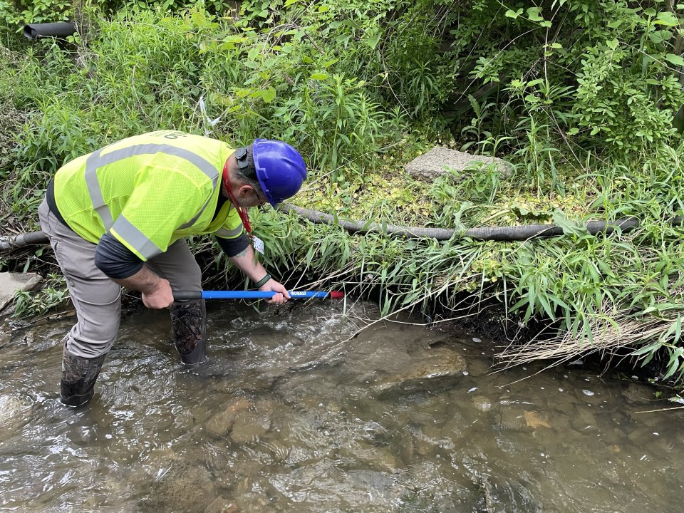 Pollution can come from two types of sources, known as “point source” or “nonpoint source.” EPA defines point source pollution as “any single identifiable source of pollutants that are discharged, such as in a pipe, ditch, ship or factory smokestack.” Much of EPA’s work related to the train derailment is cleaning up point source pollution from the damaged train cars. Another source of pollution is “nonpoint source” which can come from many sources like urban areas, agricultural chemicals, or historic industry. Through rainwater runoff, this mix of pollutants can end up in our lakes, rivers and streams. This type of pollution is difficult to control because it comes from many different sources and locations. As stream cleanup continues, it can be difficult to separate these different sources of pollution, but when crews identify sheen through sheen assessments, steps are followed to clean up derailment-related contamination. Additionally, EPA and Ohio EPA programs and initiatives continue to help improve the overall watershed from nonpoint sources.