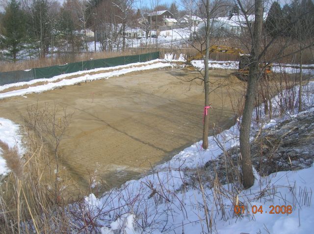 2007-2008: In December 2007 and January 2008, GE conducted supplemental removal activities in a wetland located in the southeastern corner of the school property. This removal was based on new data collected by EPA. Approximately 1,700 cubic yards of soil were removed and transported to the Hill 78 OPCA, and the area was backfilled with clean soil and restored. The 1,700 cubic yards of material combined with the 41,300 cubic yards of material excavated and removed in 1999 results in a total of 43,000 cubic yards of material removed from the school property pursuant to the Consent Decree.