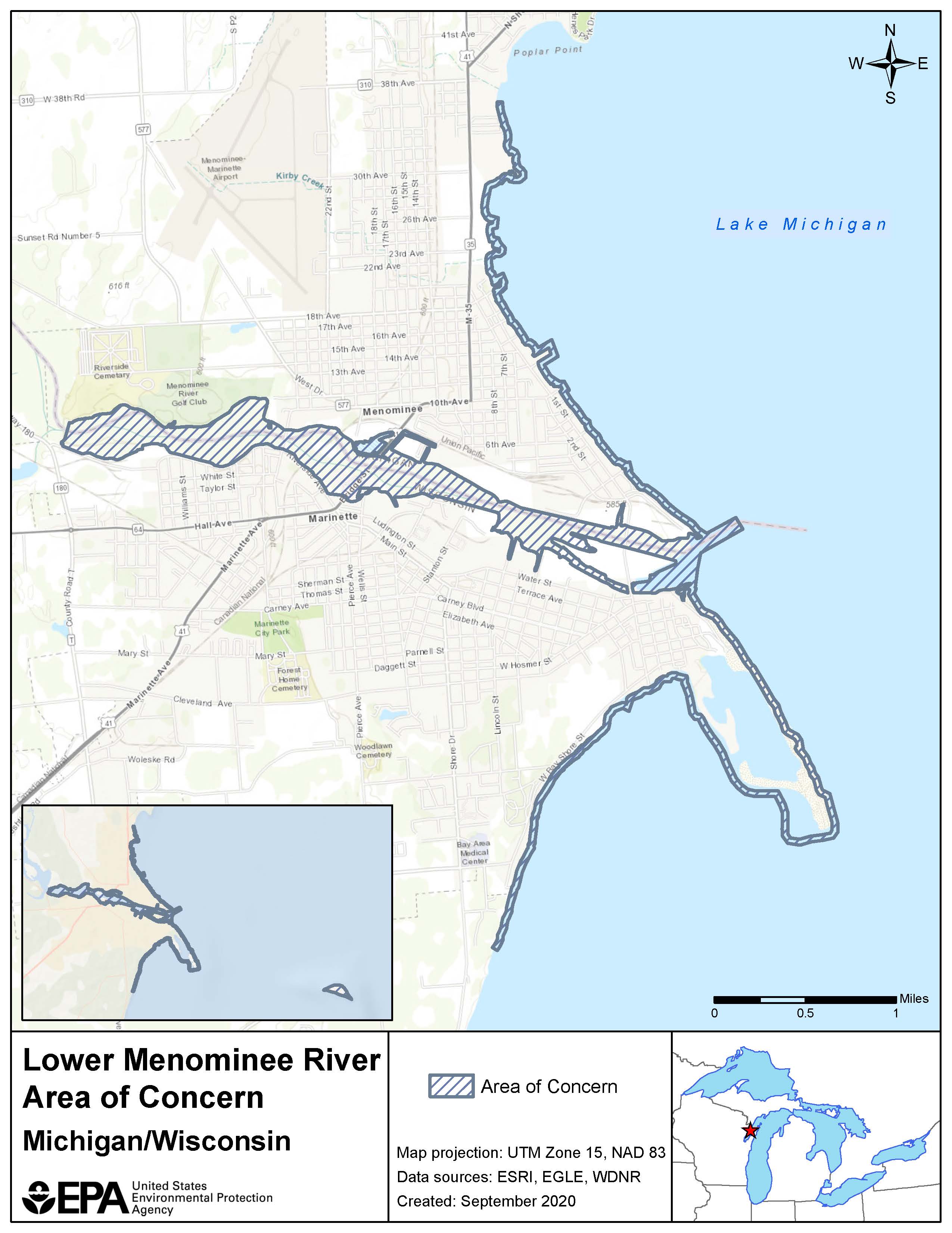 The Lower Menominee River forms the boundary between the northeast corner of Wisconsin and the southern tip of Michigan’s upper peninsula, with headwaters originating in both states. The river’s main stem flows from the city of Menominee, Mich., and Marinette, Wis., and empties into Green Bay.