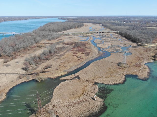 DEC and U.S. EPA in collaboration with state and federal partners, restored wetland habitat through the promotion of shallow-water vegetation growth near the shoreline with the placement of low-profile berms. In total, this restoration project restored 16 acres of habitat along the Grand Island Shoreline and approximately 3,760 linear feet of shoreline. Construction was completed in 2022. This $2.2 million project was funded by the Great Lakes Restoration Initiative.