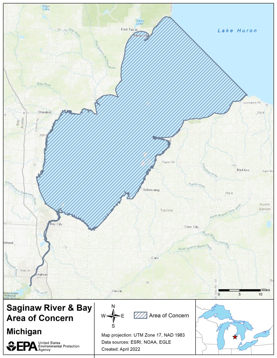 The Saginaw River and Bay was designated as an Area of Concern (AOC) under the 1987 Great Lakes Water Quality Agreement. Contaminated sediments, fish consumption advisories, degraded fisheries and loss of significant recreational values are the major reasons for this AOC designation. Saginaw River and Bay priorities include nonpoint pollution control, wetland and habitat restoration, and remediation of sediment contaminated with dioxin, PCBs and other organics.