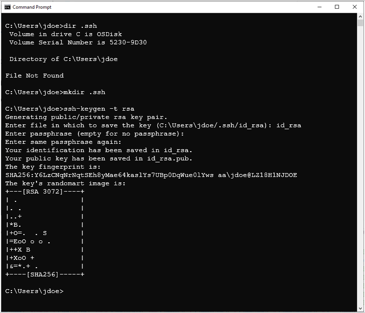 id_rsa). - Select the Enter key when prompted for a passphrase.