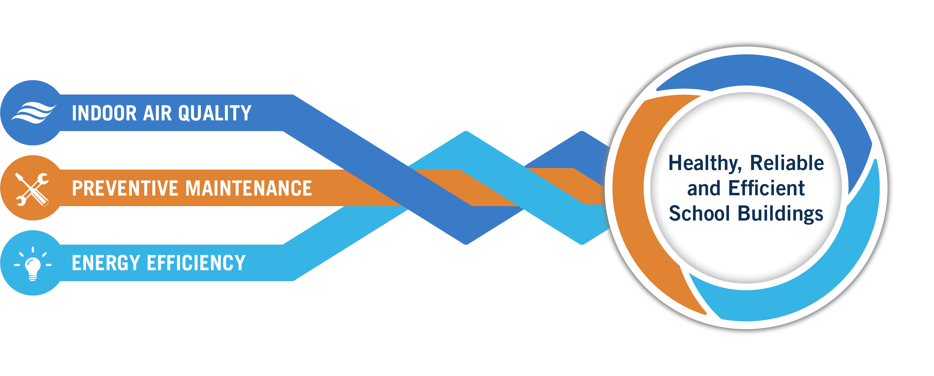 Saving money while keeping buildings safe and reliable is one of the top priorities in most schools across the nation, and this document will help equip you to make this happen. Here you will find guidance for developing a comprehensive approach to IAQ preventive maintenance that includes energy efficiency and helps to cut costs. As shown in Graphic 3, integrating IAQ management, preventive maintenance and energy efficiency helps ensure healthy, efficient learning environments and smooth building operations.