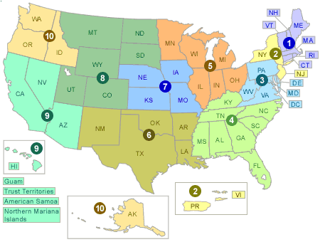 - Region 2: New Jersey, New York, Puerto Rico, US Virgin Islands