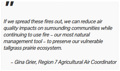 “After analyzing weather pattern models, we were able to confirm that the smoke emissions from the Flint Hills fires were impacting air quality in downwind Kansas and Missouri communities,” Grier said. “That’s when Region 7’s Air Quality Planning Branch began considering what to do about it.”
