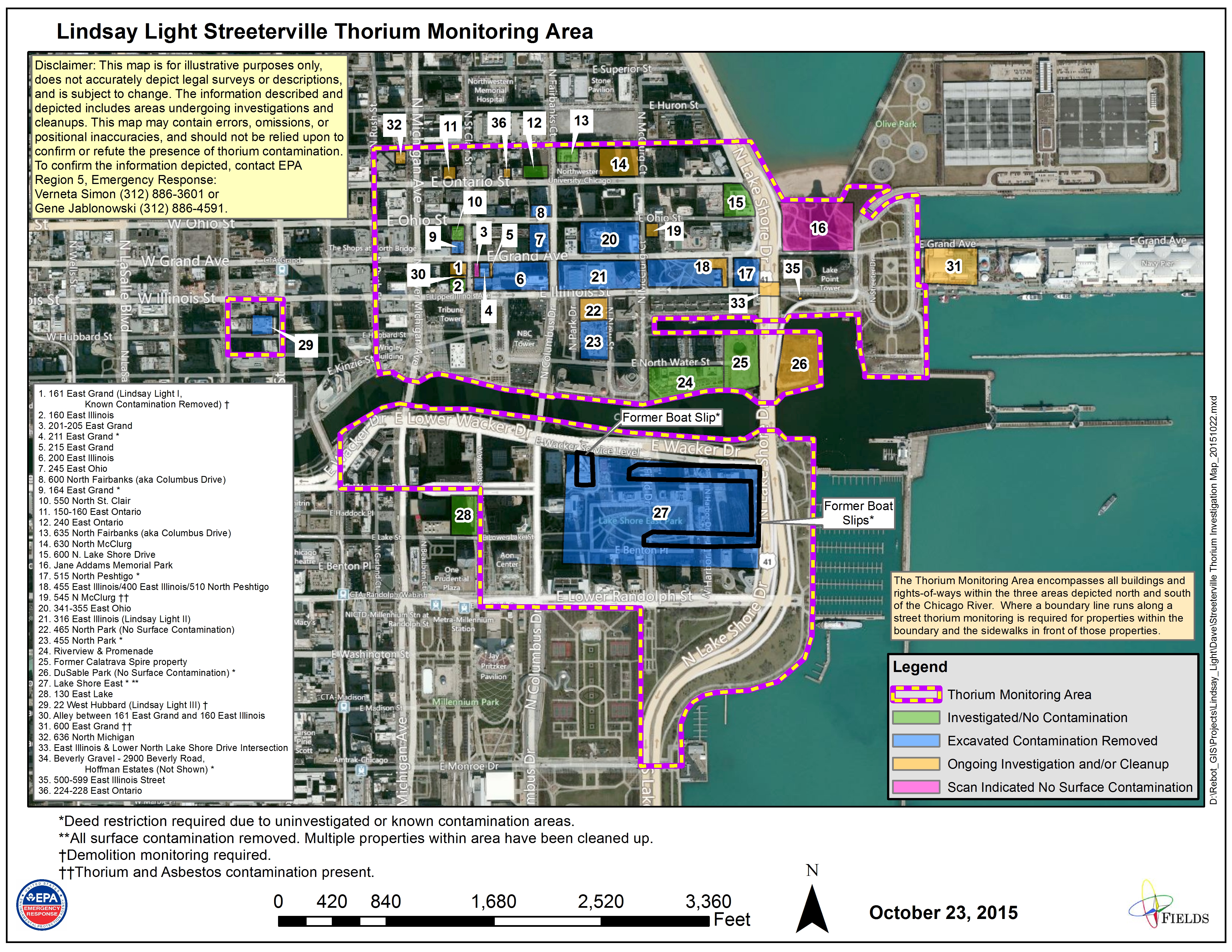 Disclaimer: This map is for illustrative purposes only, does not accurately depict legal surveys or descriptions, and is subject to change. The information described and depicted includes areas undergoing investigations and cleanups. This map may contain errors, omissions, or positional inaccuracies, and should not be relied upon to confirm or refute the presence of thorium contamination.