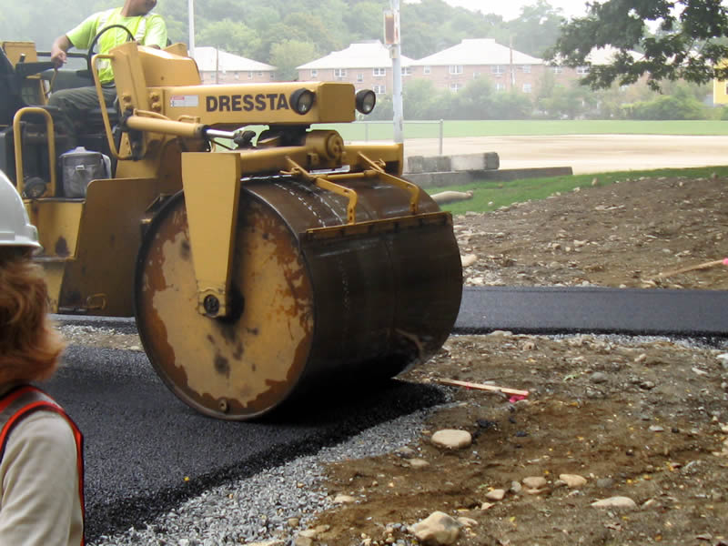 The parking lot after 2 layers of pavement have been poured, spread and rolled.