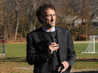 Arlington Town Manager, Adam Chapdelain, addresses the crowd.