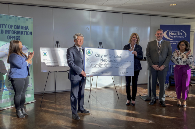 LENEXA, KAN. (FEB. 3, 2023) – Today, the U.S. Environmental Protection Agency (EPA) Region 7 and the U.S. Department of Housing and Urban Development (HUD) presented ceremonial checks worth $34.3 million to the City of Omaha, Nebraska, to protect children from lead at homes in the city.
