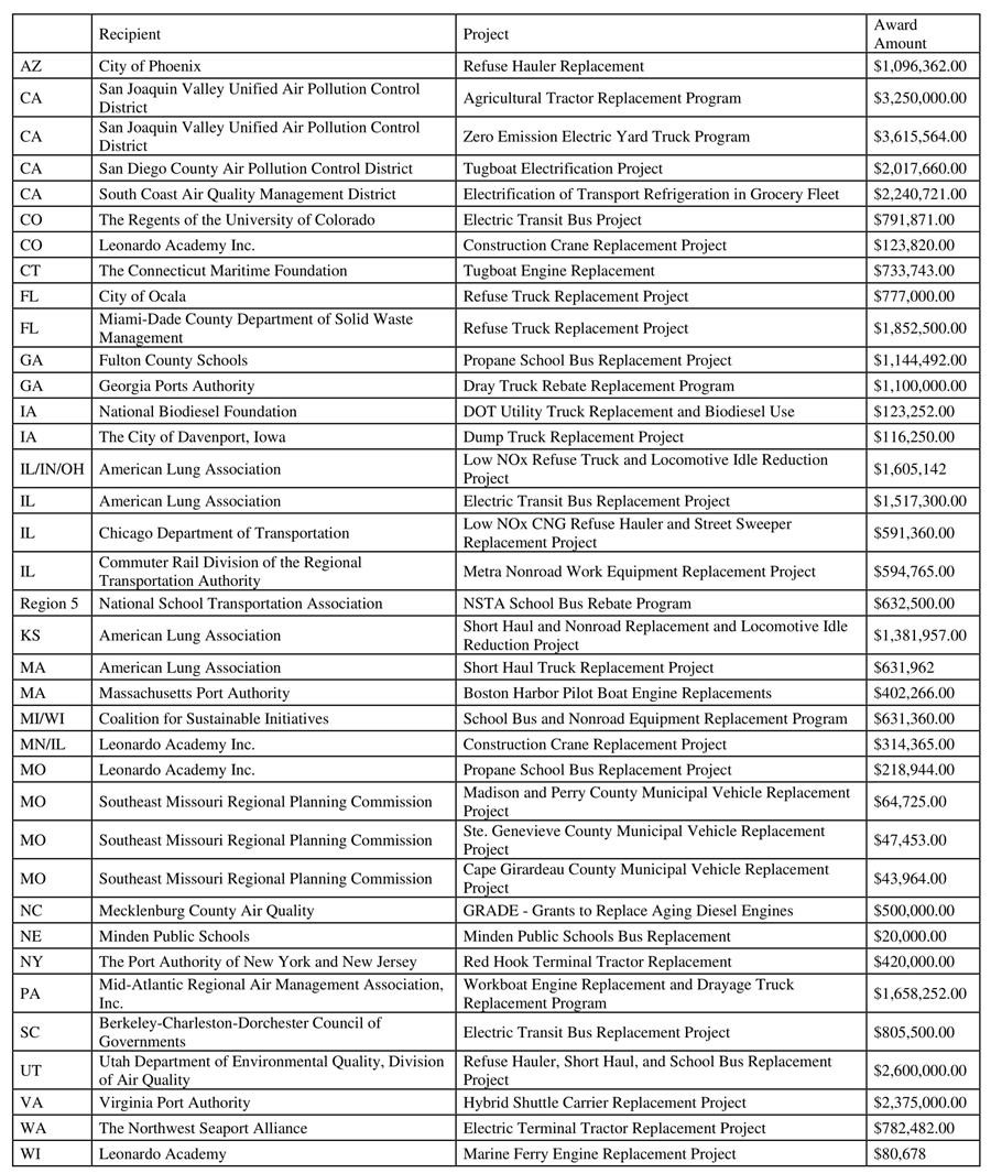 As these new grants are finalized and awarded, details on recipients, funding amounts, and project types will be listed on the DERA program webpages. For more information, please visit https://www.epa.gov/dera