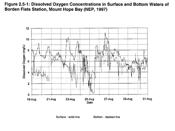 - Figure 2.5-1: Dissolved Oxygen Concentrations in Surface and Bottom Waters at Borden Flats