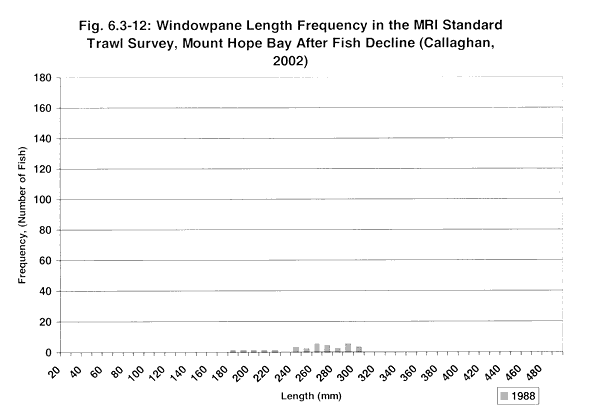 - Figure 6.3-12: Windowpane Length Frequency in the MRI Standard Trawl Survey, Mount Hope Bay After Fish Decline