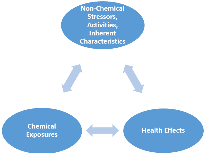 Diagram 1. Chemical exposures and health effects are influenced and modified by non-chemical stressors, activities, and inherent characteristics.