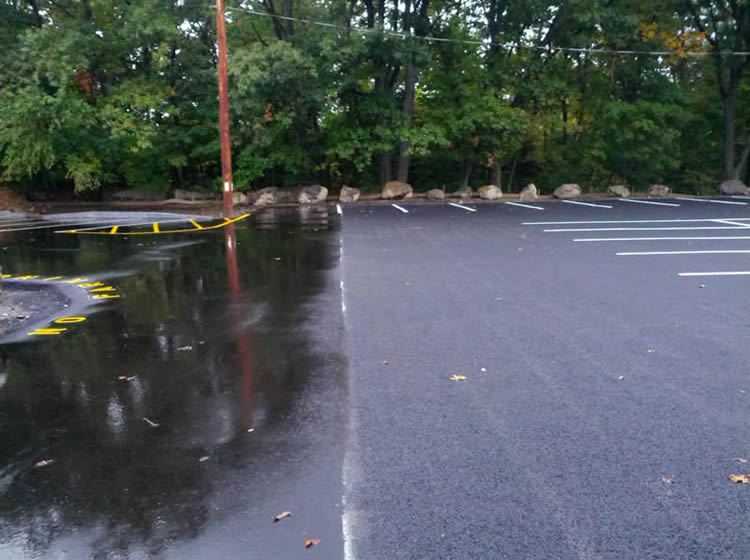 Does a downspout send it down a driveway or parking lot to the street and down a storm drain?
